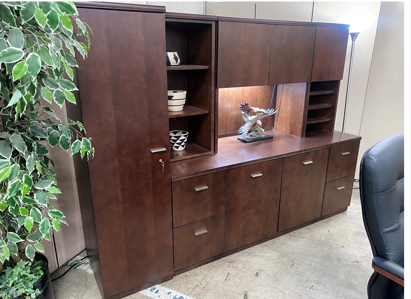 Desk,Credenza and Hutch Set. Includes Wardrobe . Espresso Wood,