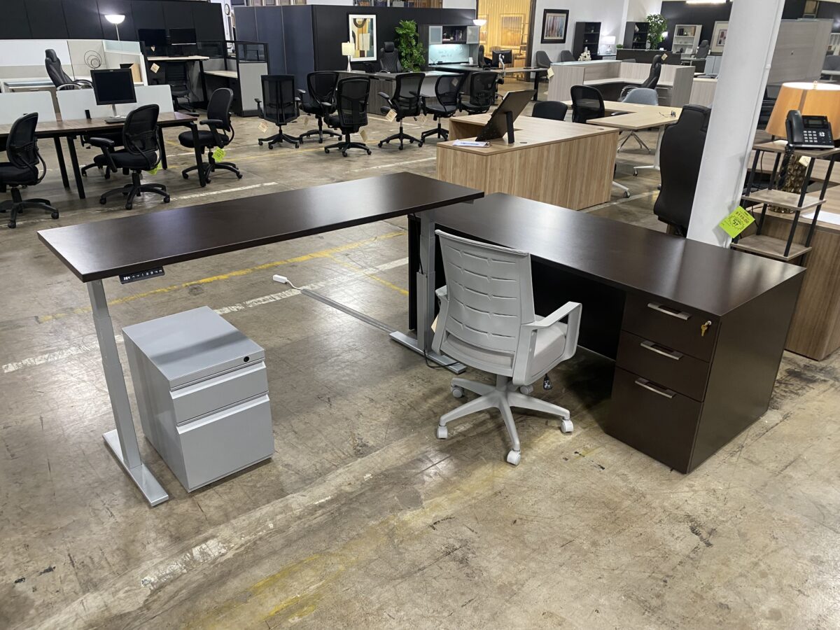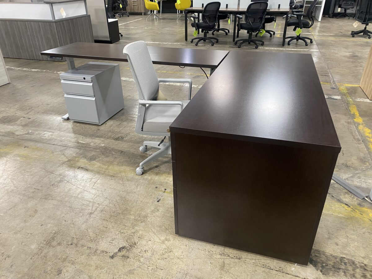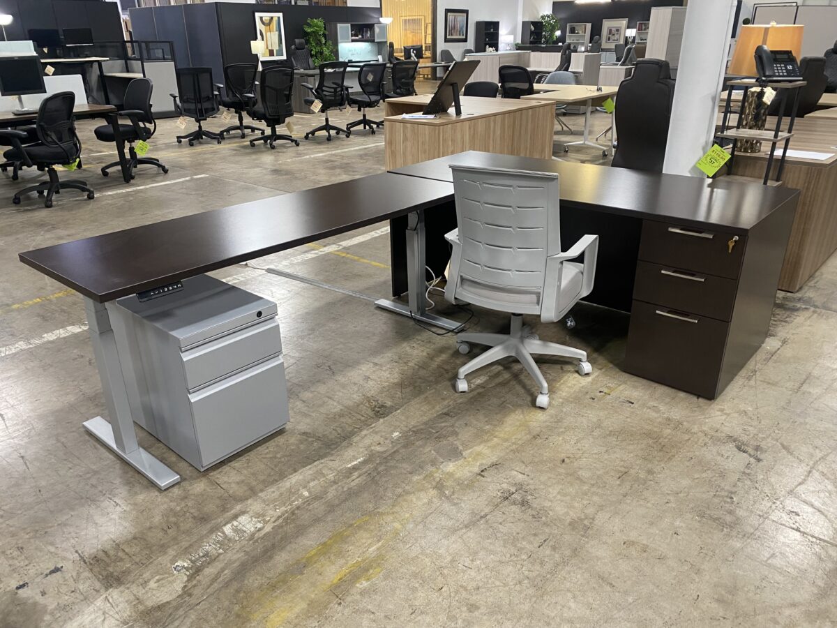 - Main desk regular height (30”deep x 72”w x 30”high)