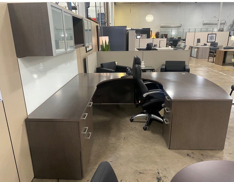 U Shape with wall mounted hutches, magnetic Glass board under hutch,